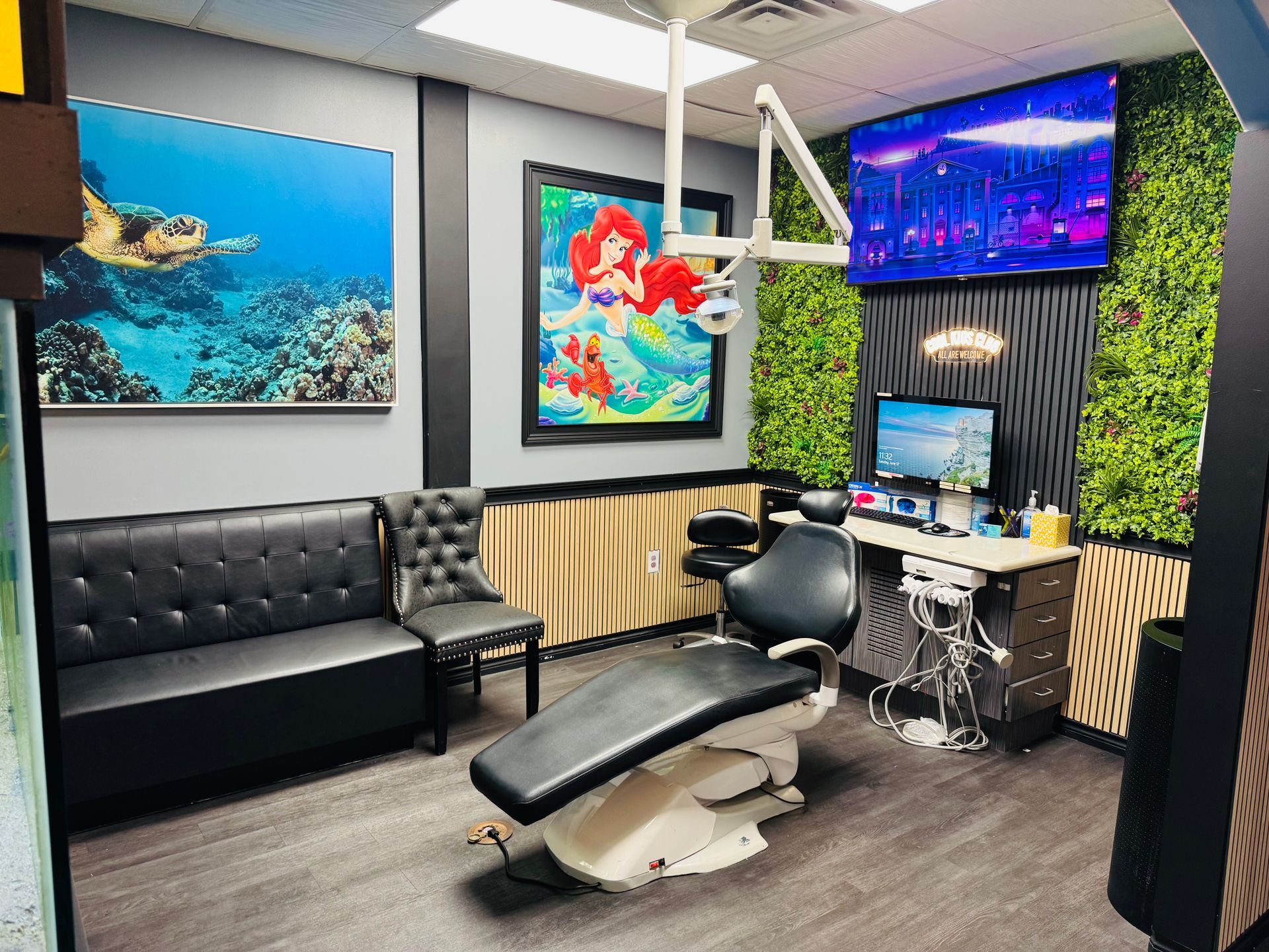 Our water-themed office creates a relaxing and enjoyable environment for patients of all ages, with a comfort-focused lobby featuring full arcades, HD TVs playing popular kids movies, a mesmerizing fresh water aquarium, and complimentary WiFi. Equipped with state-of-the-art technology, our modern facility ensures efficient and precise dental care. Our friendly and professional staff is dedicated to providing exceptional service, making your visit comfortable and stress-free.