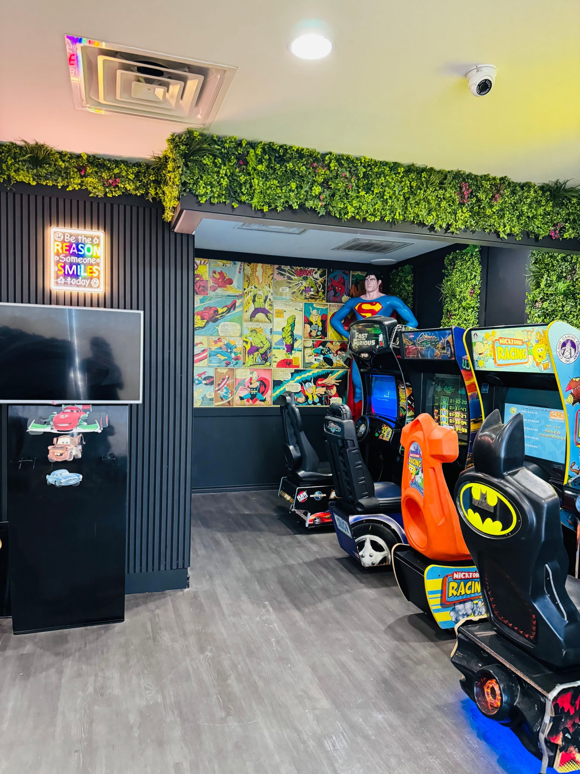 At Aqua Dental, we are committed to providing exceptional dental care in a welcoming and comfortable environment. Located at 1530 Austin Hwy #112, San Antonio, TX 78218, our water themed office is designed to create a soothing atmosphere for patients of all ages. Step into our comfort focused lobby, where both kids and adults can enjoy full arcades and HD TV playing popular kids movies.